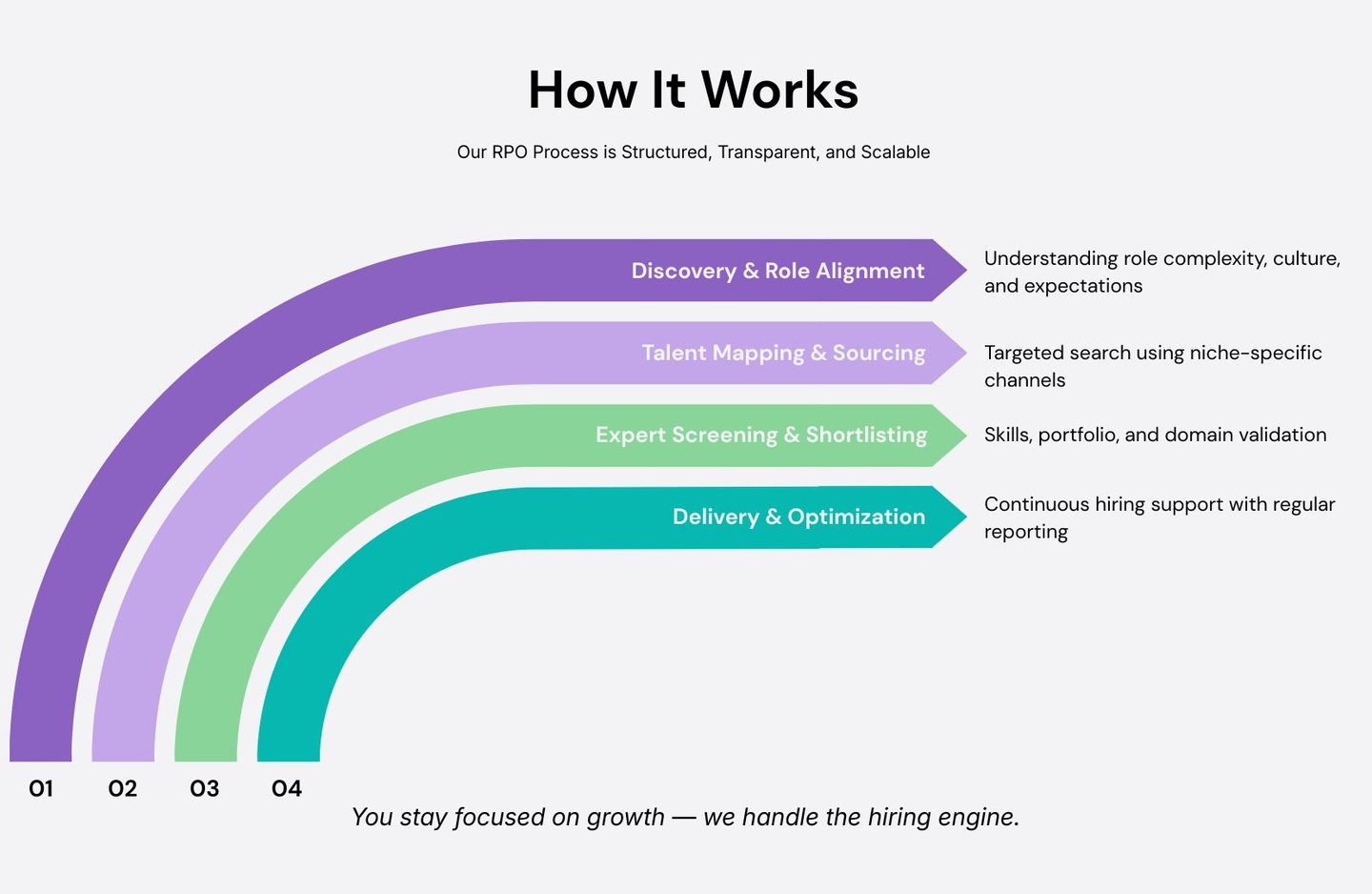 End-to-end hiring support as your extended recruitment team.
